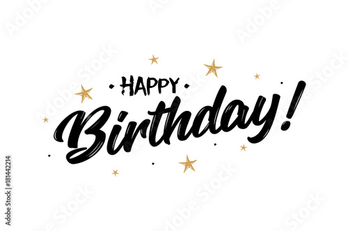 Happy Birthday Beautiful Greeting Card Poster Calligraphy Black Text Word Gold Ribbon Hand Drawn Design Elements Handwritten Modern Brush Lettering On A White Background Isolated Vector Stock Vector Adobe Stock