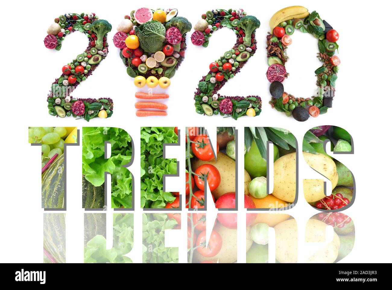 2020 Trends Made Of Fruits And Vegetables Including A Light Bulb Icon Stock Photo Alamy