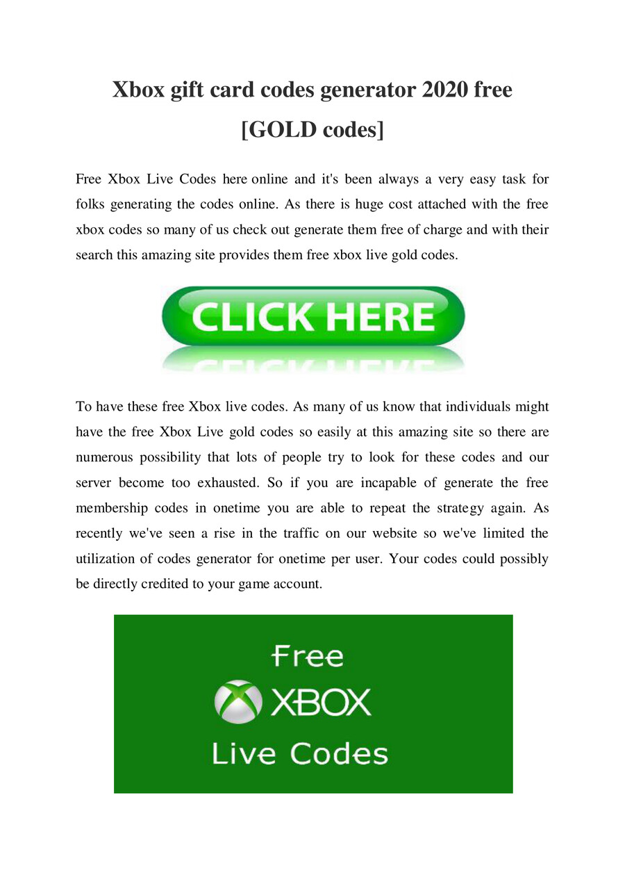 11 rows Now to get the free Xbox codes you need to follow the 9 necessary steps given here. Xbox live codes help you with fulfilling your longing and give rapture. Free xbox live gold codes xbox gift card codes generator.