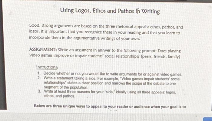 Solved Using Logos Ethos And Pathos In Writing Good Str Chegg Com